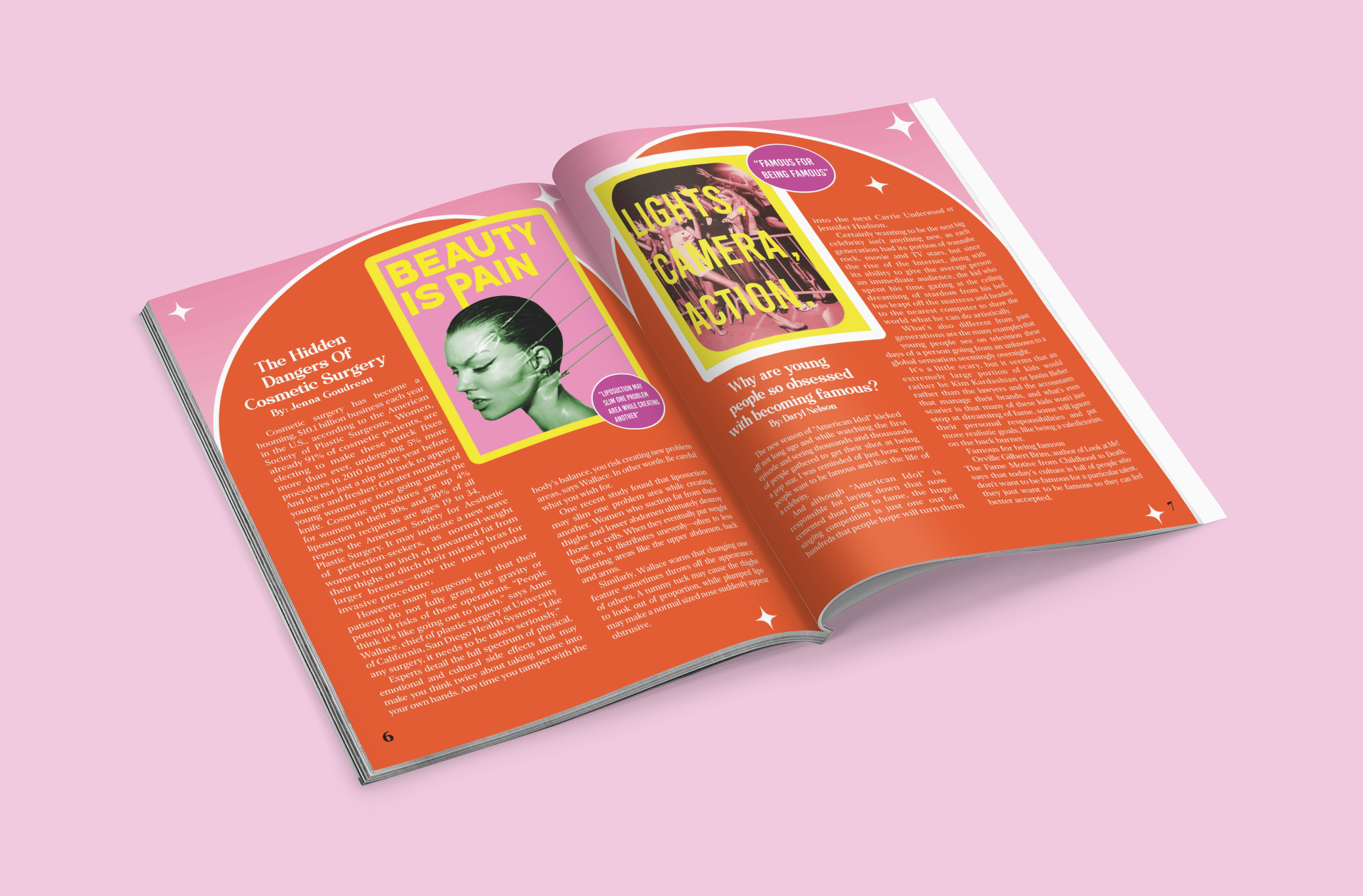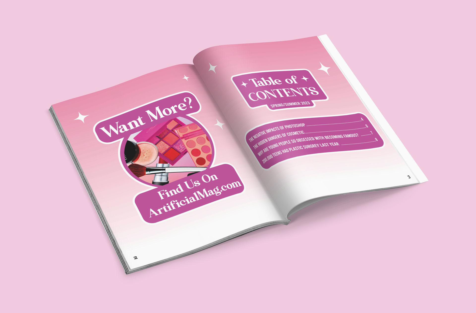 This Magazine was created to expose all of the "fake" parts of our society. Inspired by the post-modern movement, this magazine is full of color and unique graphics/typography that creates a unique brand identity.